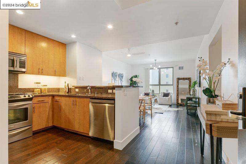Your urban oasis is here, live well in the heart of Uptown Oakland! Enjoy peek-a-boo SF views from your top floor 2 bedroom/2 Bath condo in the Art Deco inspired Broadway Grand. This spacious and bright open unit has large windows through out, and hardwood floors. The upscale amenities include in-unit washer + dryer, dedicated parking space w/EV charger, extra storage unit, secure garage, and pre-wired Google Fiber/Xfinity/Sonic high-speed internet. With a Walk Score(r) of 98, right out your door, you'll find the best bars, restaurants, theaters, and farmer's markets in Oakland. And so much more, so close... Lake Merritt, Whole Foods, BART, and major freeways all nearby. Schedule a visit and make it your home! OPEN HOUSE SUNDAY 6/19 @2-4PM